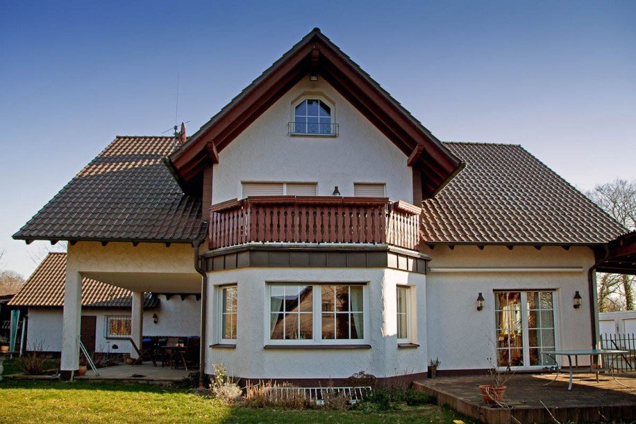 Bei dem Objekt handelt es sich um ein freistehendes Einfamilienhaus in Massivbauweise. Das Haus befindet sich auf einem 933 qm großen Grundstück und wurde 1999 errichtet. Die Wohnfläche verteilt sich auf zwei Ebenen: Ein Erdgeschoss mit Wintergarten, Terrasse und Garten, ein Obergeschoss mit drei Schlafräumen. Der Keller ist zum Teil wohnraummäßig ausgebaut. Alle Räume des Hauses sind sehr großzügig zugeschnitten. So verfügt etwa der Wohn-/Essbereich über 62 qm, die Wohnküche über 28 qm.