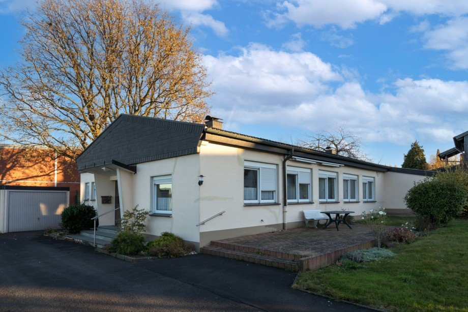 Et Voilà: Und hier ist er. Ein Bungalow mit etwa 230 qm Wohnfläche auf einer Ebene. Derzeit aufgeteilt in 2 Wohnungen, die sich aber auch leicht miteinander verbinden lassen.