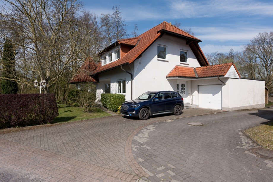 - Die Garage ist direkt am Haus; Ausgangstür in den Garten